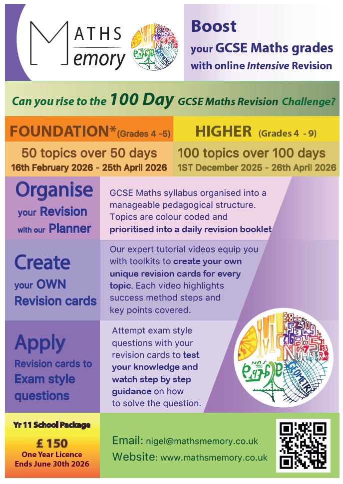 Maths Memory is an ‘Intense GCSE Maths Revision Course’, targeted at final year GCSE Maths students. We offer both Foundation and Higher Tier courses.