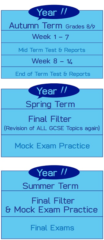 More emphasis is focused on GSCE exam paper practice and specialised exam techniques are provided. Bespoke revision cards are offered enabling the pupil to keep their memory refreshed and prepared.